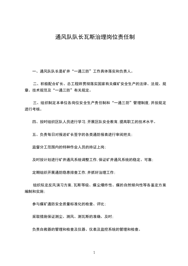 一、通风队队长是矿井“一通三防”工作具体落实和负责人。