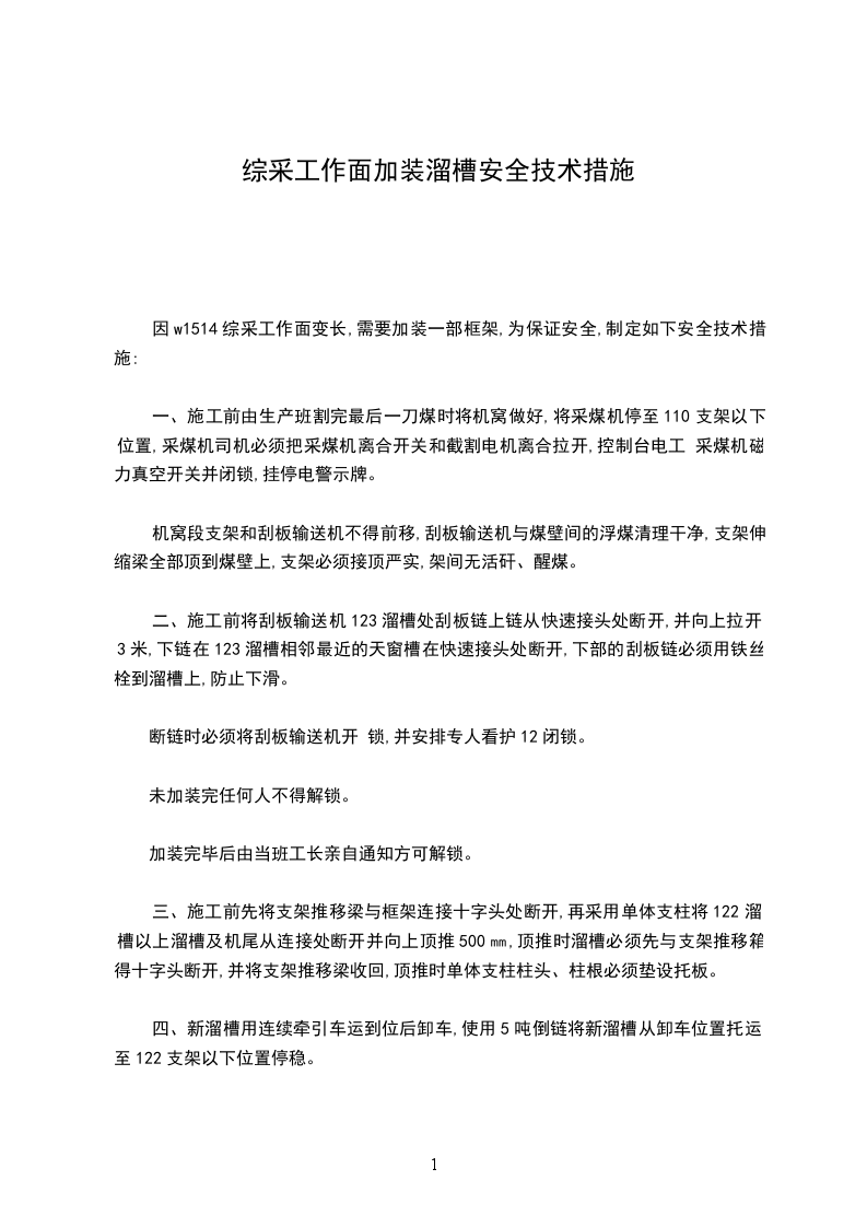 因w1514综采工作面变长,需要加装一部框架,为保证安全,制定如下安全技术措施: