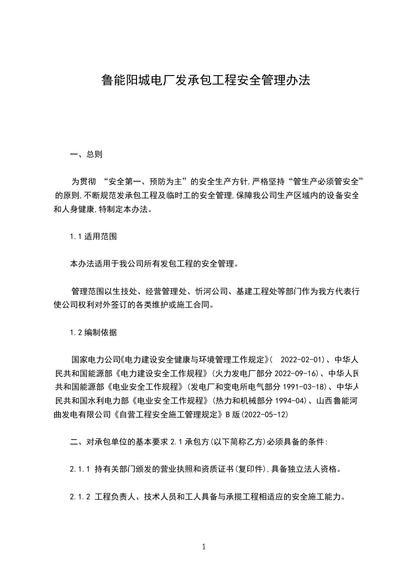 为贯彻 “安全第一、预防为主”的安全生产方针,严格坚持“管生产必须管安全”的原则,不断规范发承包工程及临时工的安全管理,保障我公司生产区域内的设备安全和人身健康,特制定本办法。