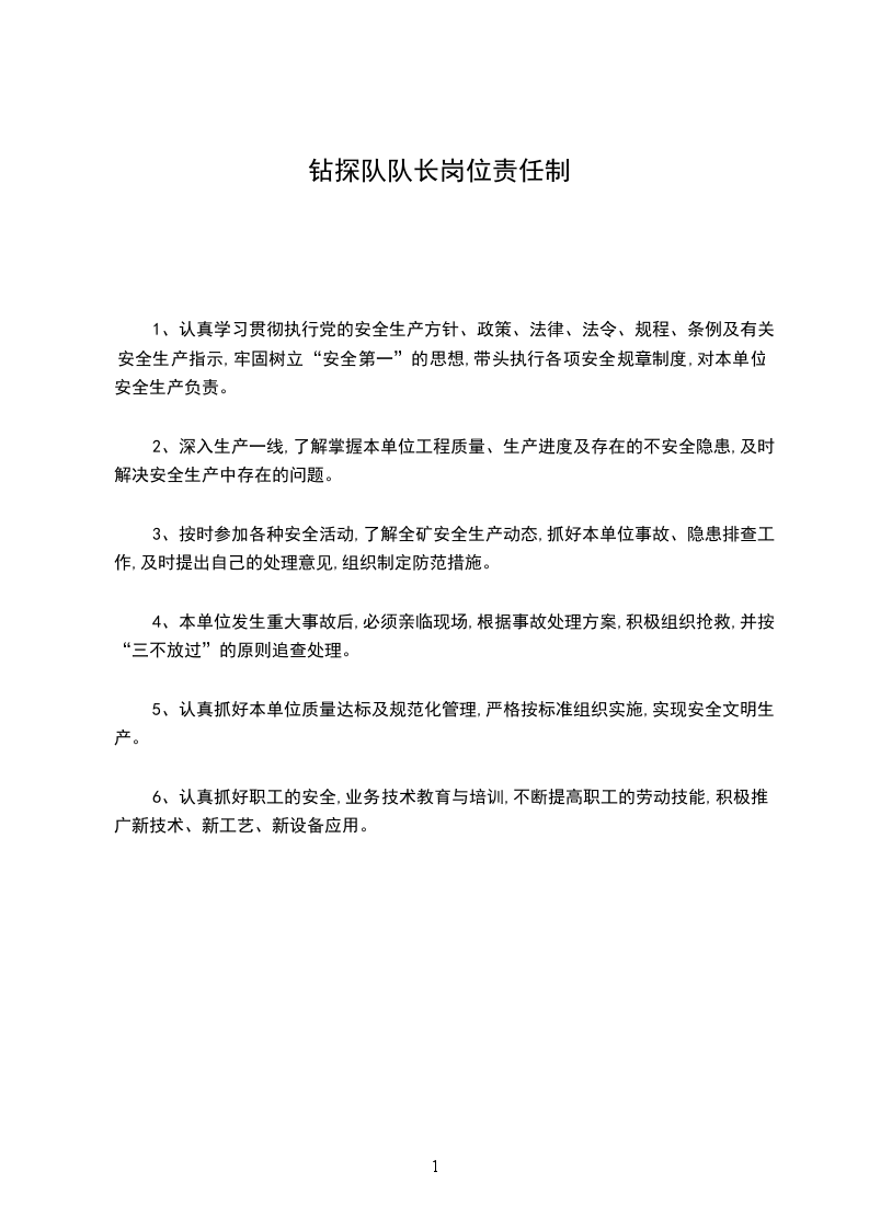 1、认真学习贯彻执行党的安全生产方针、政策、法律、法令、规程、条例及有关安全生产指示,牢固树立“安全第一”的思想,带头执行各项安全规章制度,对本单位安全生产负责。