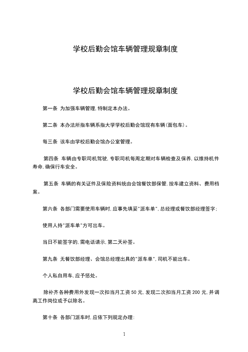 第九条 无餐饮部经理、会馆总经理出具的"派车单",司机不能出车。