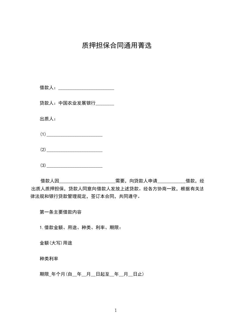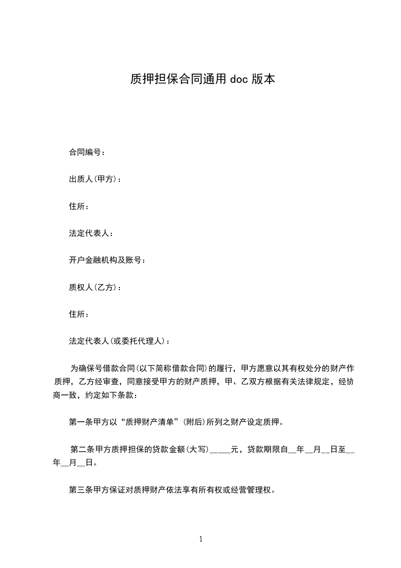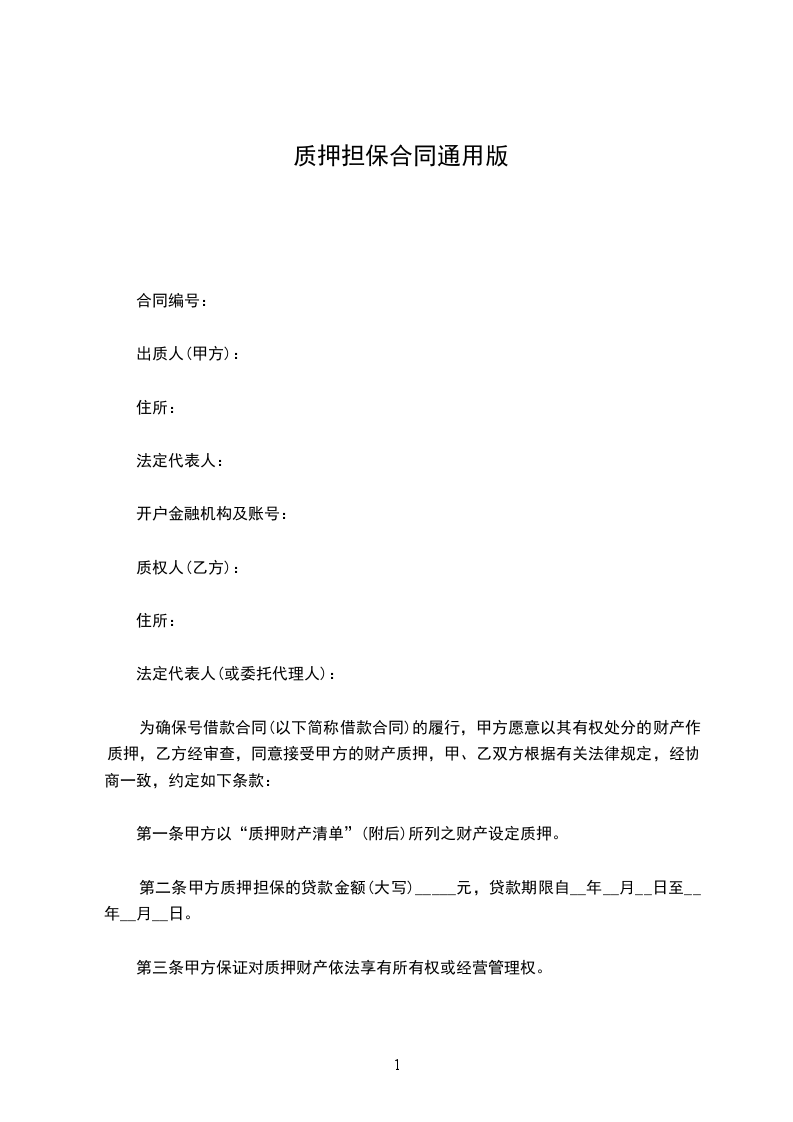 出质人(以下称甲方): 身份证号码: 企业法人营业执照号码: 住所: 法定代表人: 电话: 传真: 质权人(以下称乙方): 住所: 负责人: 电话: 传真: 甲方同意作为出质人,为__________ (在编号为_____)授信合同项下的债务向乙方提供质押担保,经甲、乙双方协商,一致同意达成如下条款:
