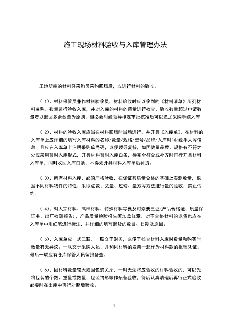 1)由采购员持发票、明细等,单据齐全方可入库。