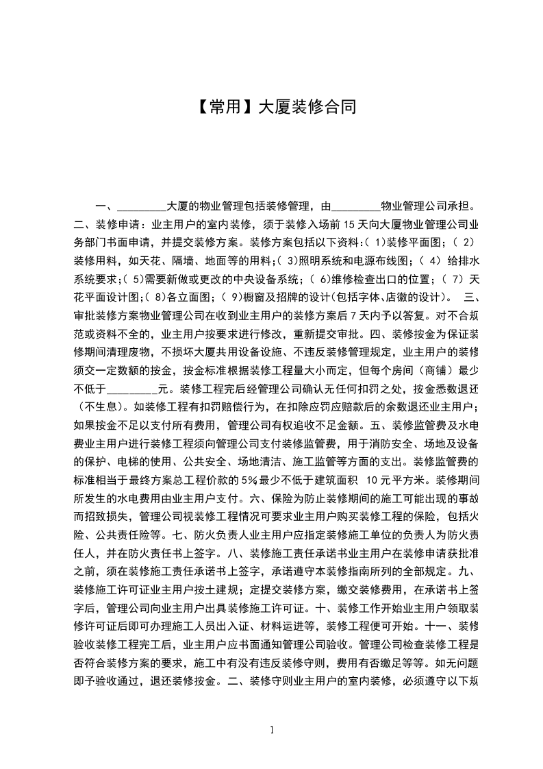 一、_________大厦的物业管理包括装修管理,由_________物业管理公司承担。