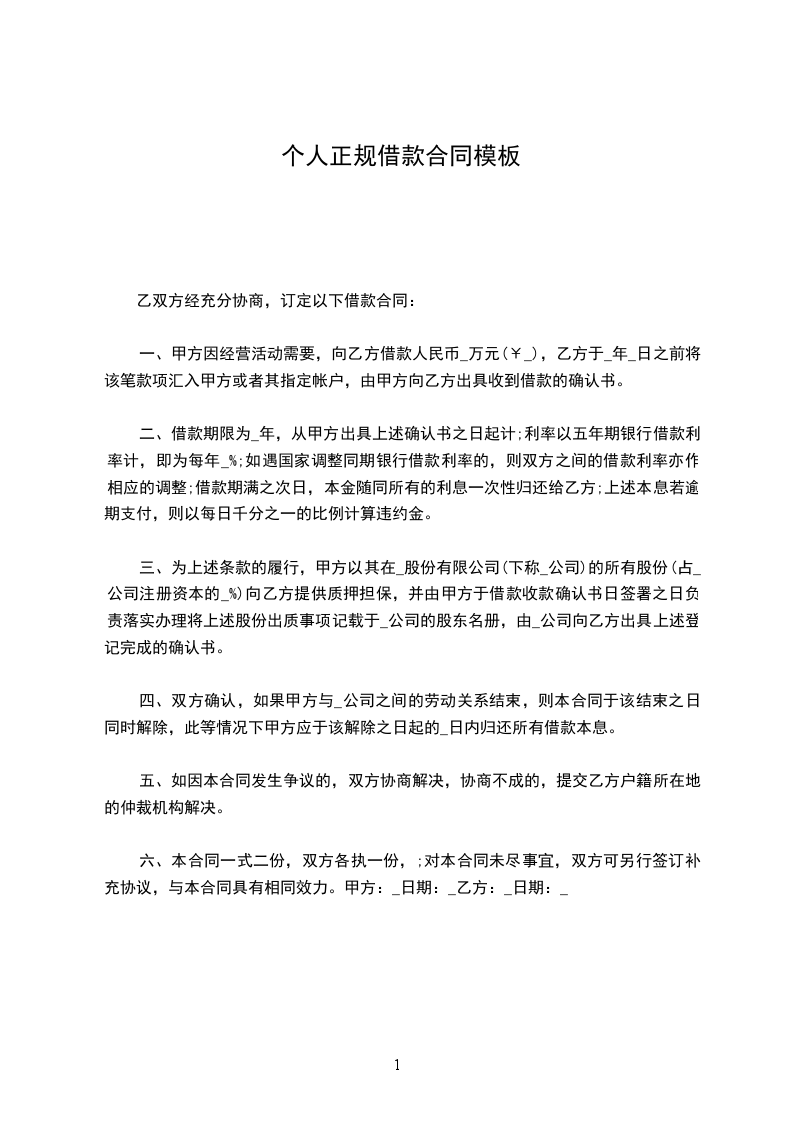 第一条 借款金额 甲方向乙方借款人民币(大写)_________________________元。