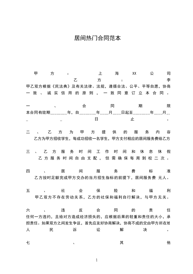 乙方在履行本合同居间活动期间所支出的各项费用,均由乙方自行承担,甲方不再支付除本合同约定之外的任何费用。