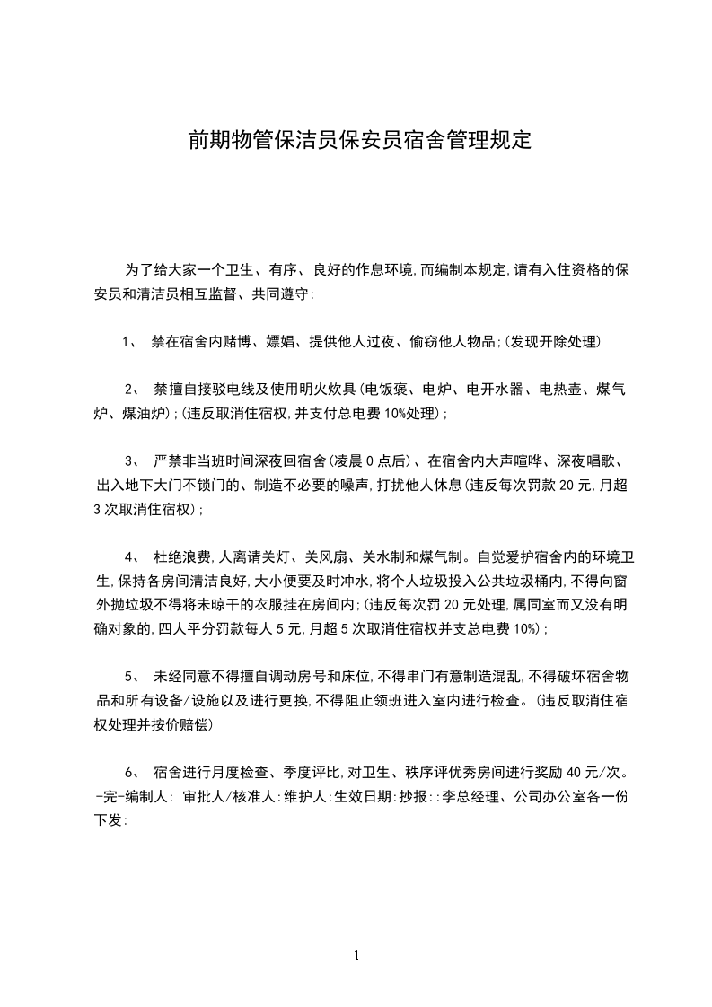 (1)保安员宿舍应保持地面干净,无痰迹、果皮、纸屑、烟头等垃圾;