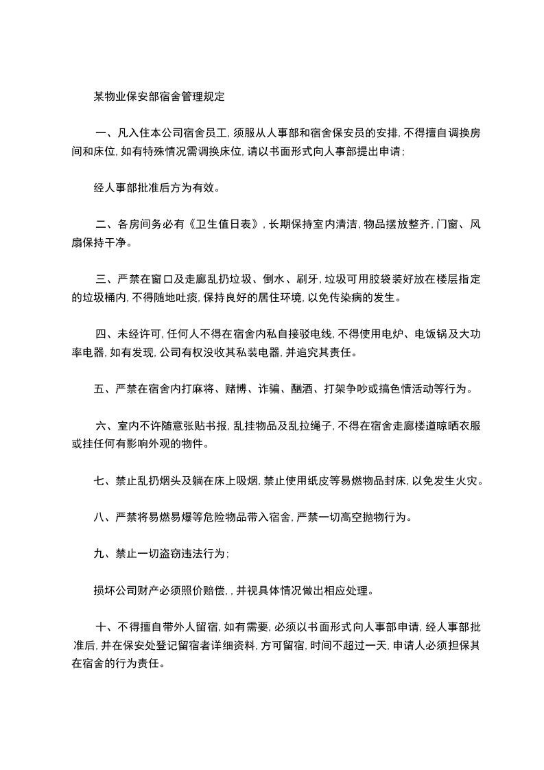 2、安防部经理(保安队长)视情况安排每周至少一次宿舍管理检查。