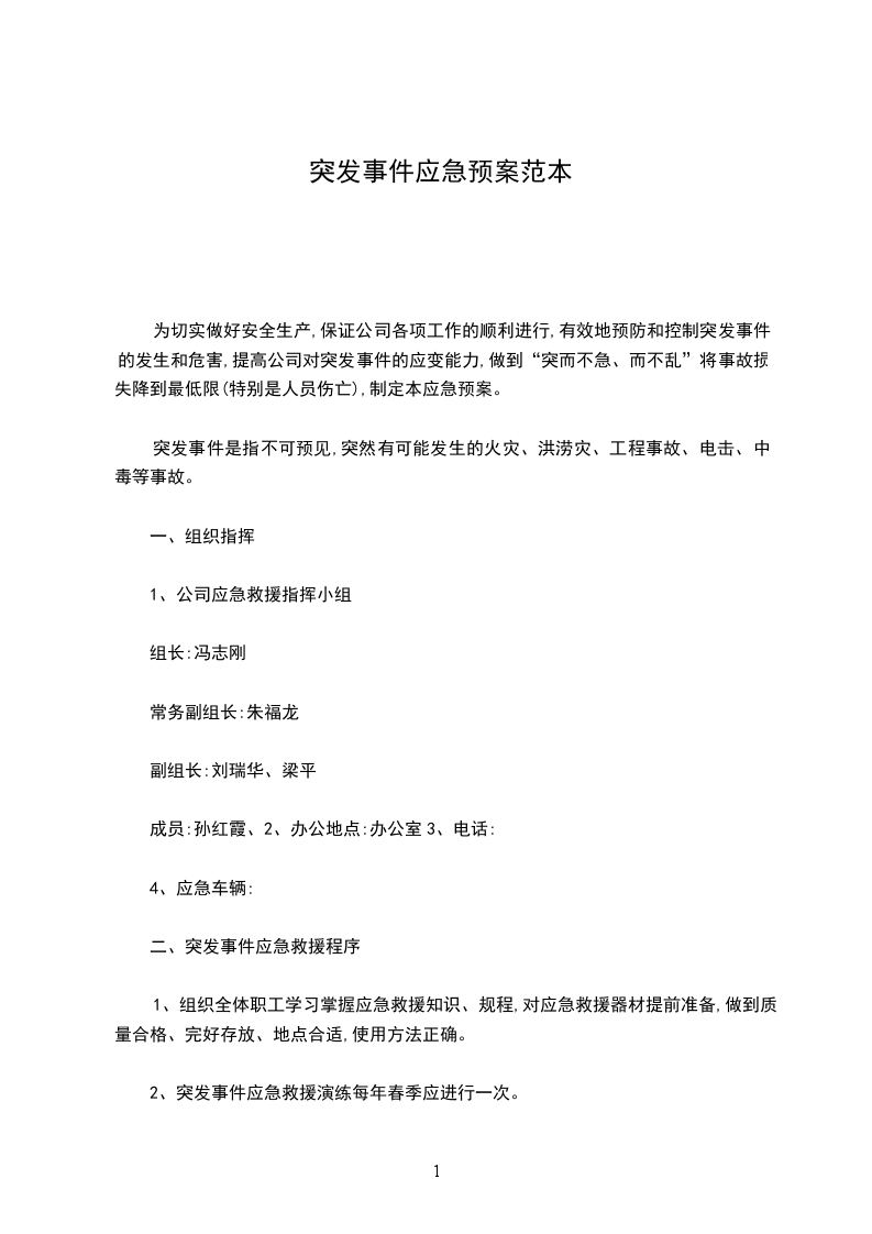 突发事件是指不可预见,突然有可能发生的火灾、洪涝灾、工程事故、电击、中毒等事故。