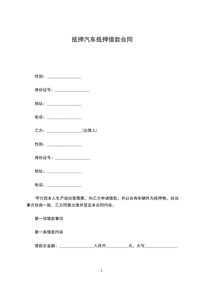 借款人: (以下简称甲方)