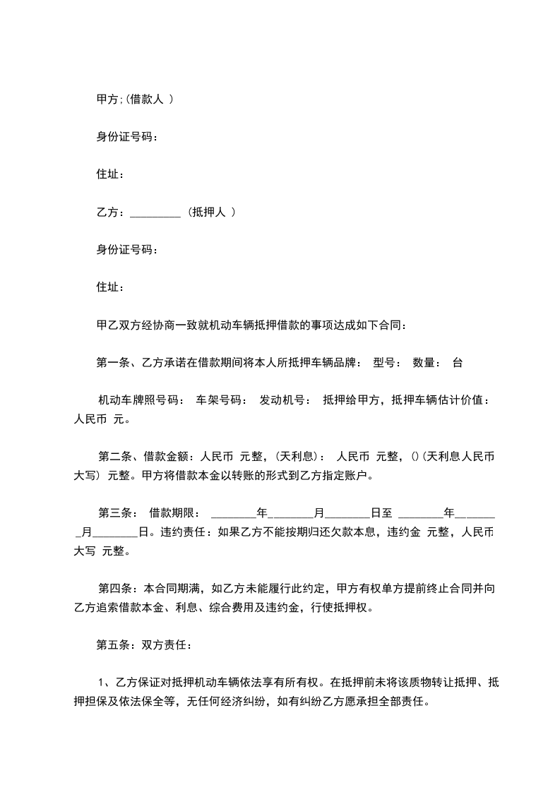 3、甲方必须保证抵押车辆的来源正当,手续齐全合法,无任何经济纠纷,无任何债权债务,否则乙方有权随时终止合同内容,并根据情况要求甲方归还本息,乙方有权追索甲方的其他财产,以清还借款本息直至清偿完本息为止。