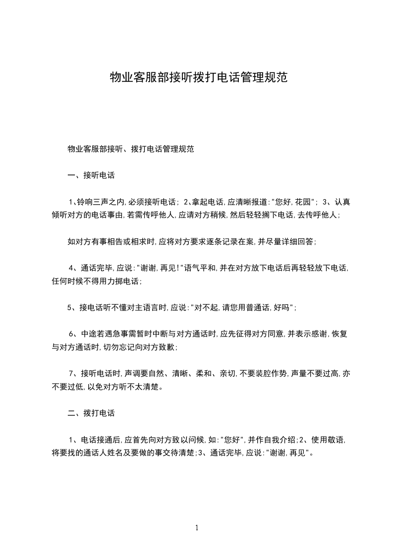 1、铃响三声之内,必须接听电话;2、拿起电话,应清晰报道:"您好,花园";3、认真倾听对方的电话事由,若需传呼他人,应请对方稍候,然后轻轻搁下电话,去传呼他人;