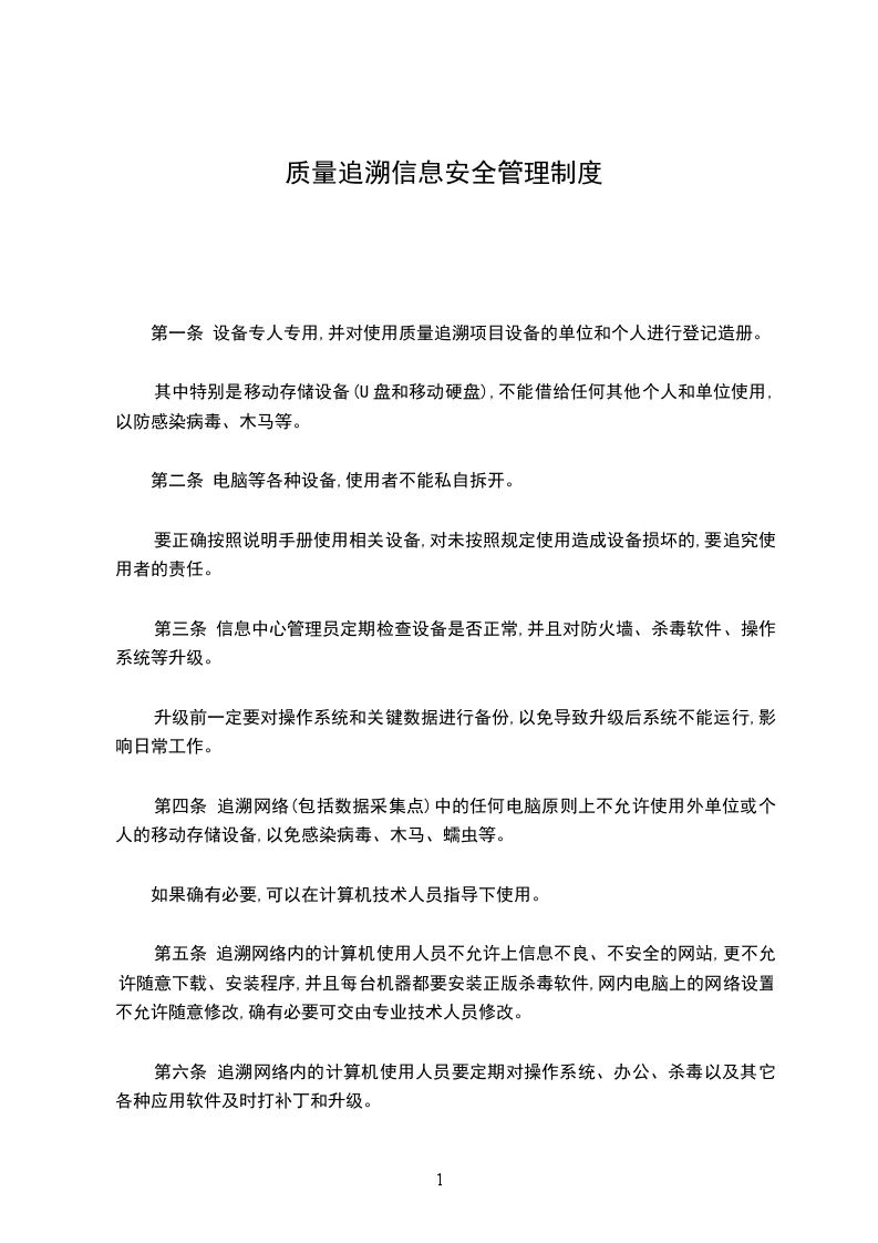 第四条 追溯网络(包括数据采集点)中的任何电脑原则上不允许使用外单位或个人的移动存储设备,以免感染病毒、木马、蠕虫等。