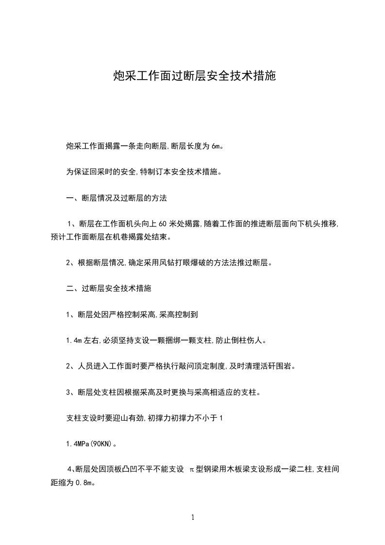 3、断层处支柱因根据采高及时更换与采高相适应的支柱。