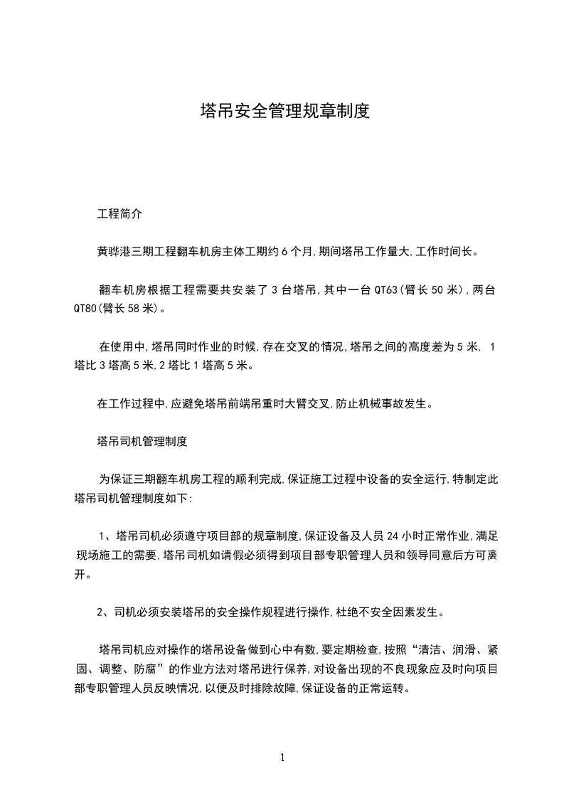 为保证三期翻车机房工程的顺利完成,保证施工过程中设备的安全运行,特制定此塔吊司机管理制度如下: