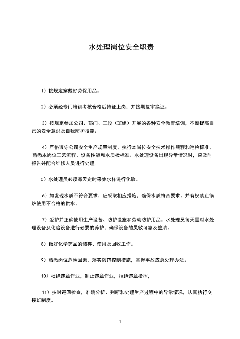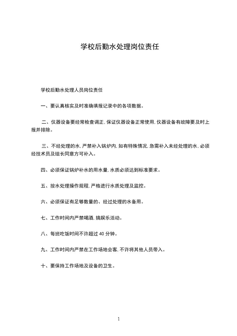 学校后勤水处理人员岗位责任