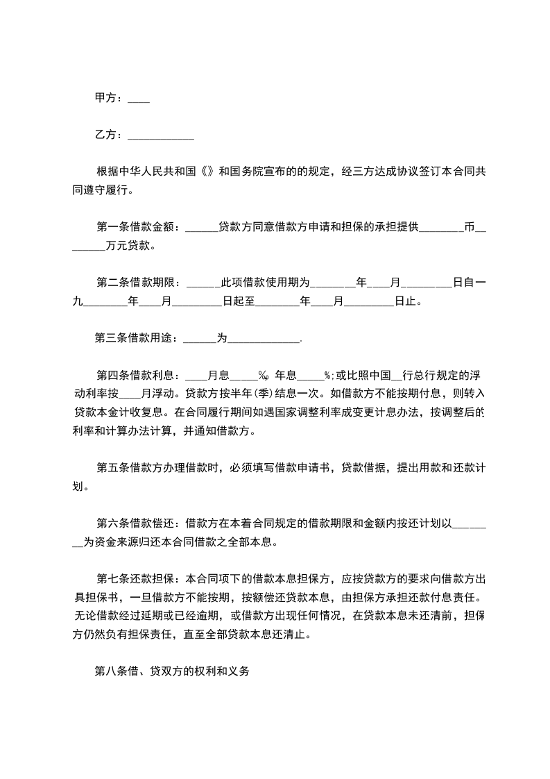 第八条 借、贷双方的权利和义务: