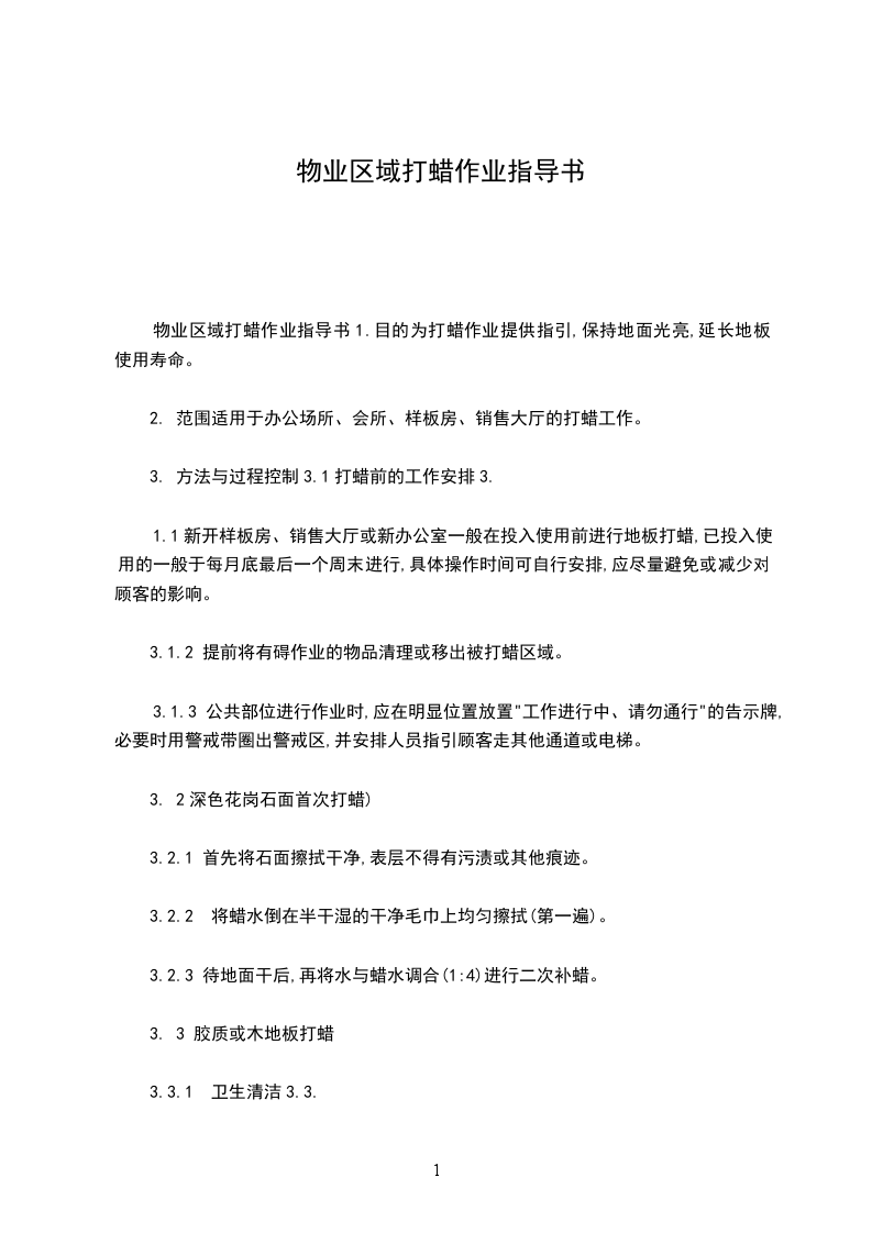 2. 范围适用于办公场所、会所、样板房、销售大厅的打蜡工作。