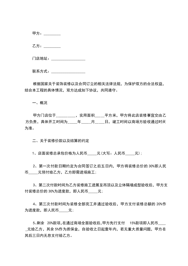 第五条 装饰装修工程价款及支付方式