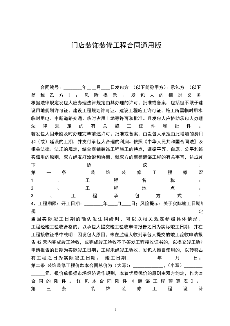 合同编号:________年____月____日发包方 (以下简称甲方):承包方 (以下简称乙方):风险提示:发包人的相对义务