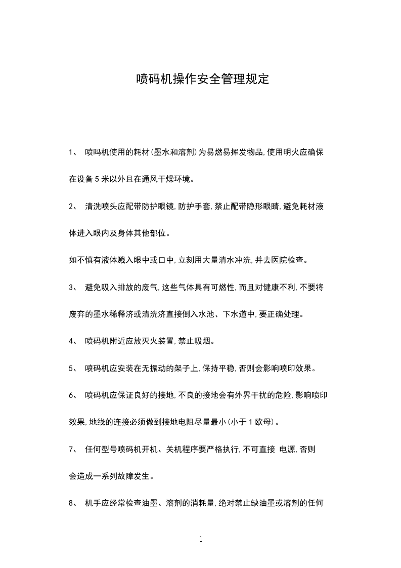 4、 喷码机附近应放灭火装置,禁止吸烟。