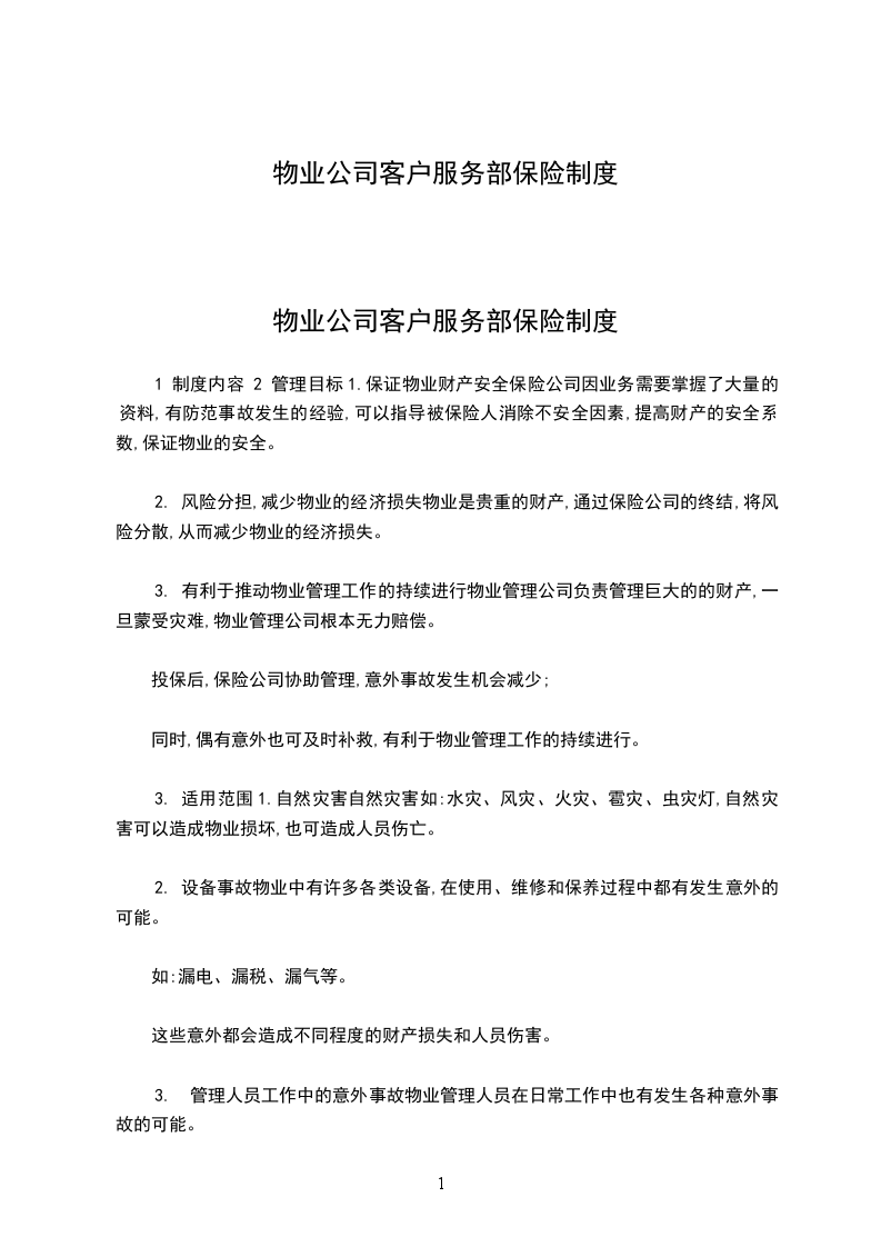 1 制度内容 2 管理目标1.保证物业财产安全保险公司因业务需要掌握了大量的资料,有防范事故发生的经验,可以指导被保险人消除不安全因素,提高财产的安全系数,保证物业的安全。