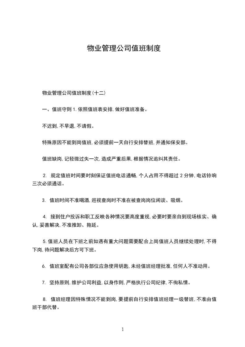 1. 值班责任时间:每日公司下班---次日早公司8:30分上班。