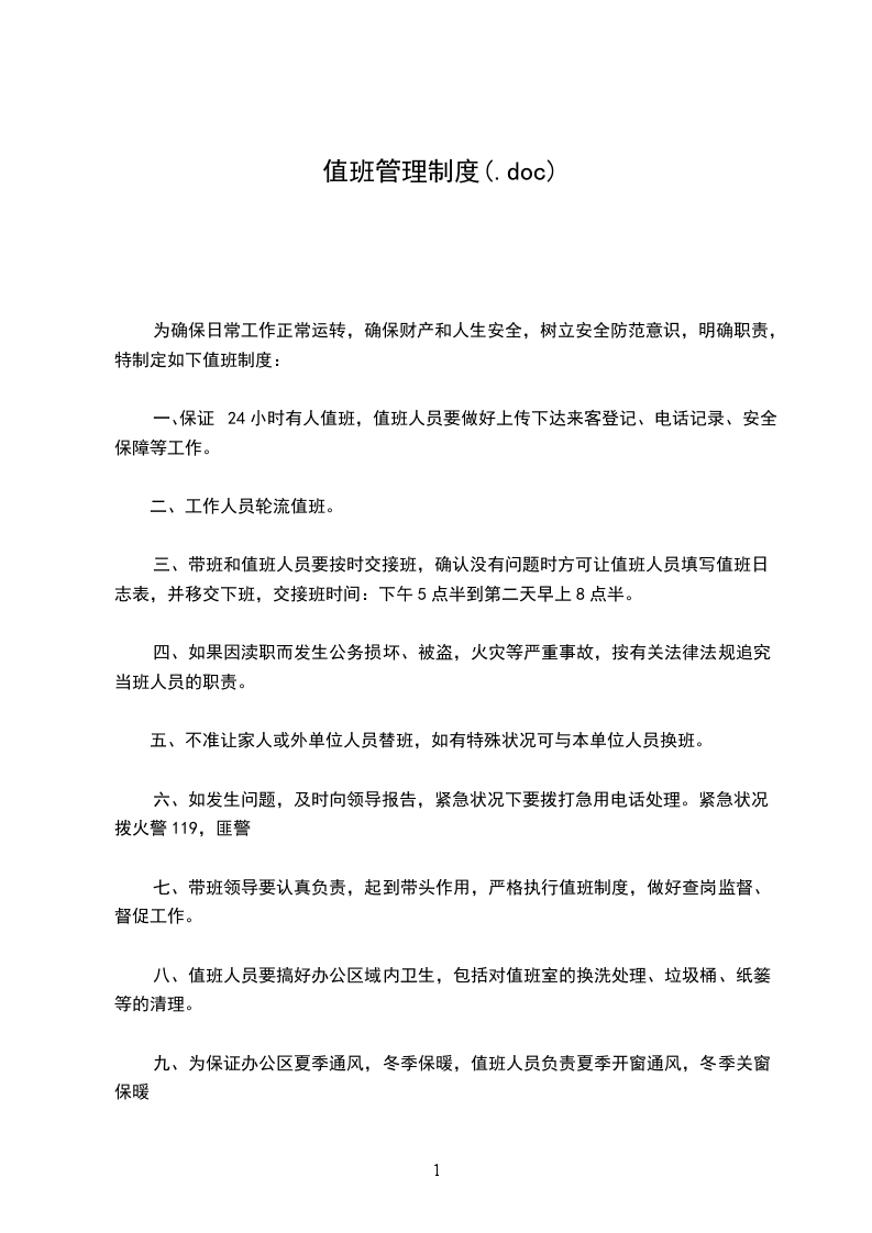 1. 值班责任时间每日公司下班后---次日早8:30分公司上班。