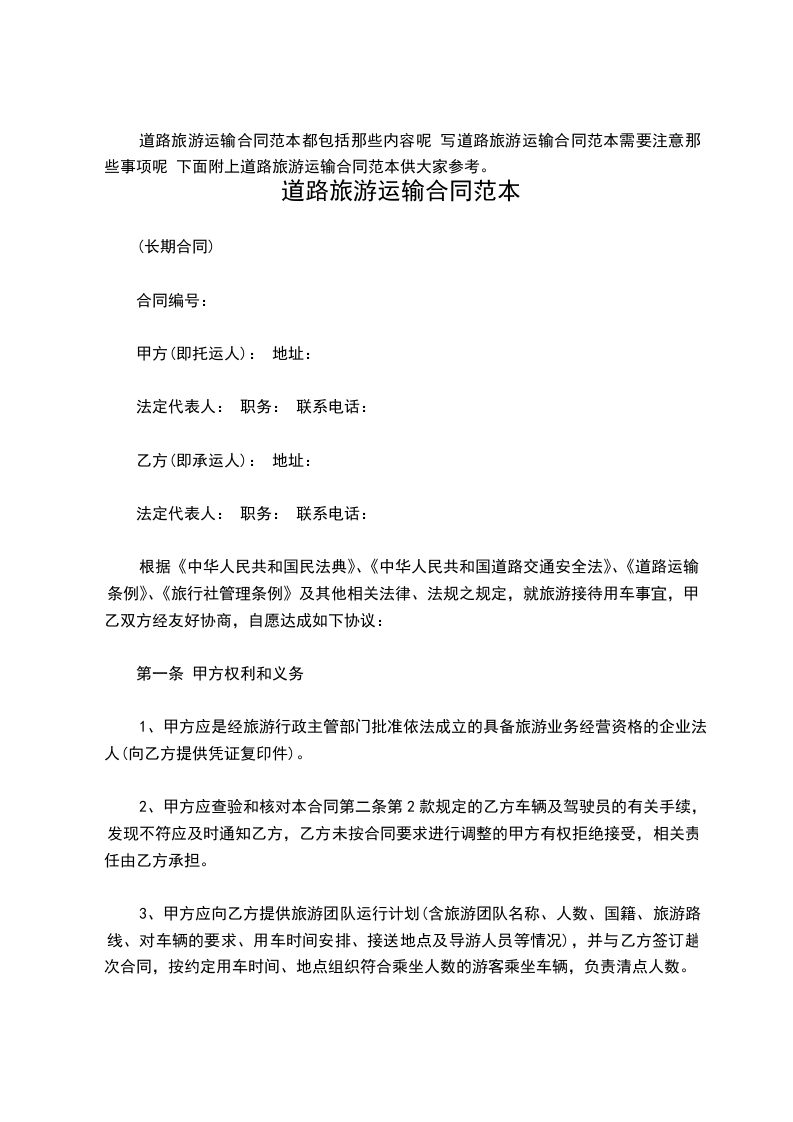 道路旅游运输合同范本都包括那些内容呢 写道路旅游运输合同范本需要注意那些事项呢 下面附上道路旅游运输合同范本供大家参考。