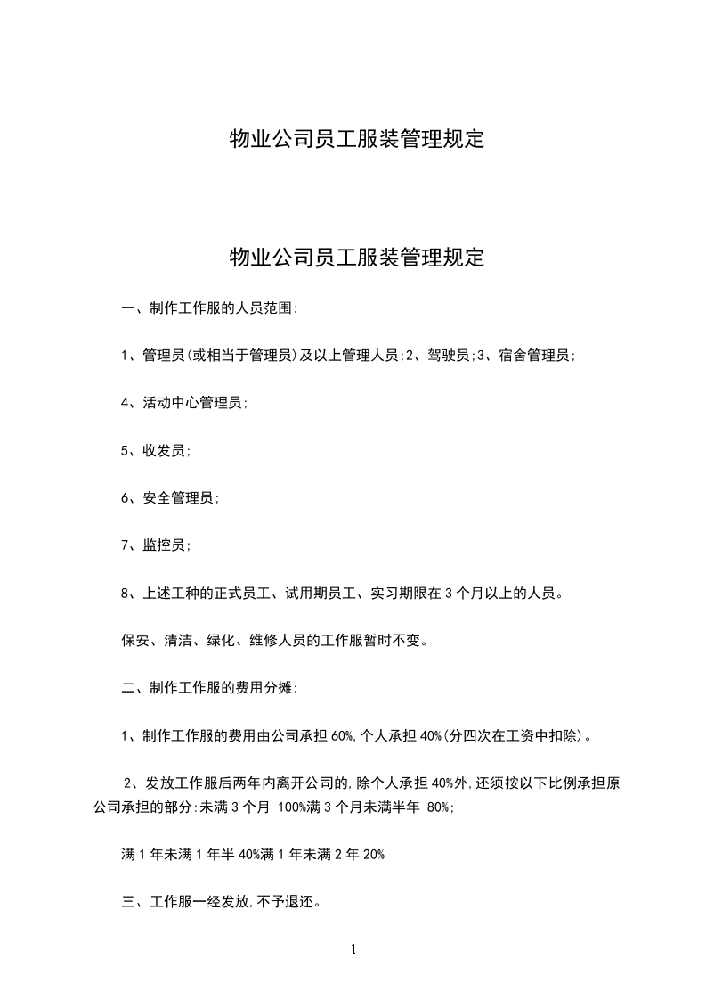 保安、清洁、绿化、维修人员的工作服暂时不变。