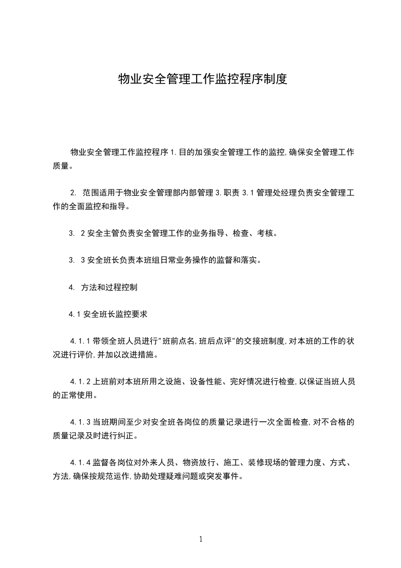 物业安全管理工作监控程序1.目的加强安全管理工作的监控,确保安全管理工作质量。