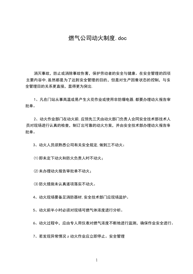 1、严格执行动用明火审批制度,因特殊需要必须动用明火时,需 防安全管理人同意后动用;2、动用明火时,现场必须有专人负责, 并配备相应的灭火器材,确保消防安全。