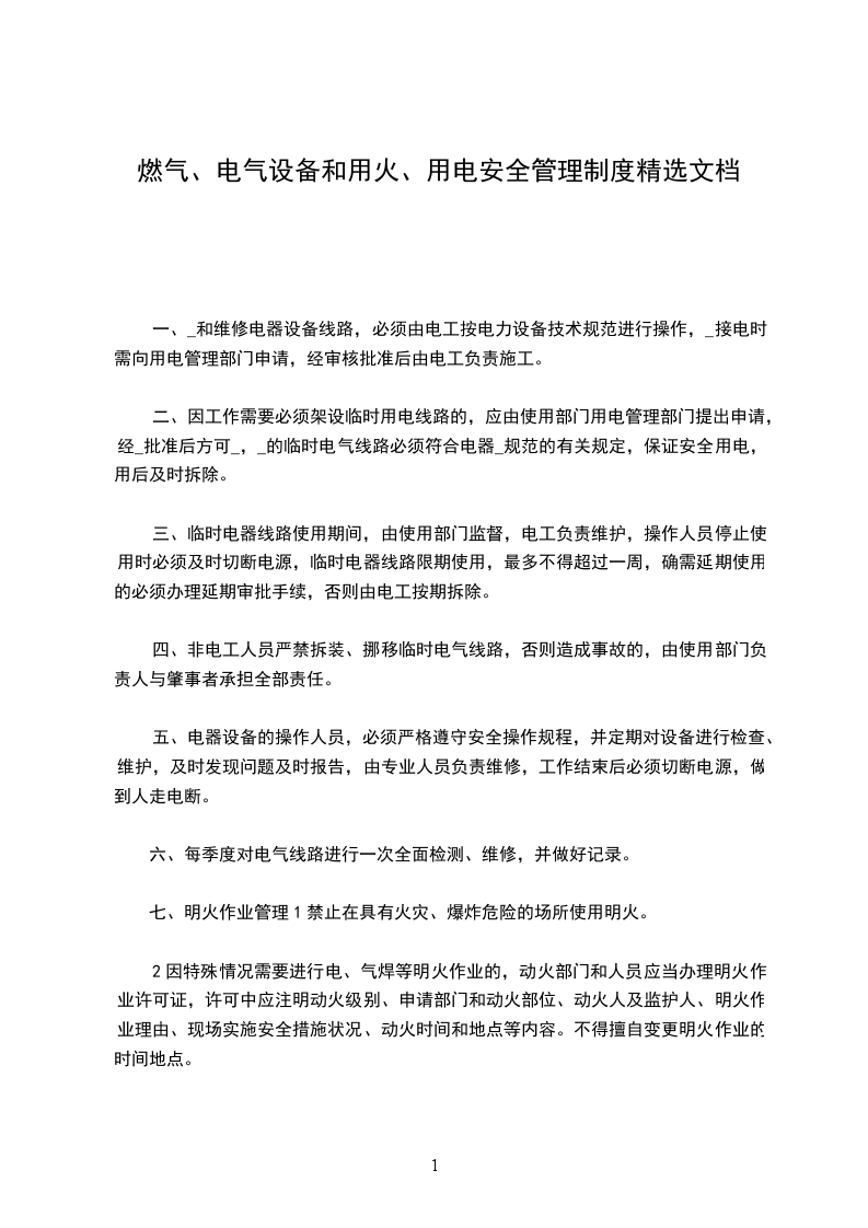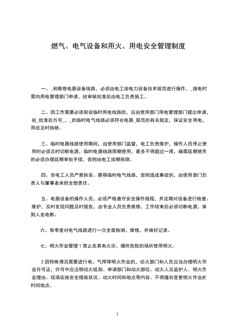 (一)燃气、电气设备和用火、用电安全管理由学校专兼职消防安全管理人员负责。