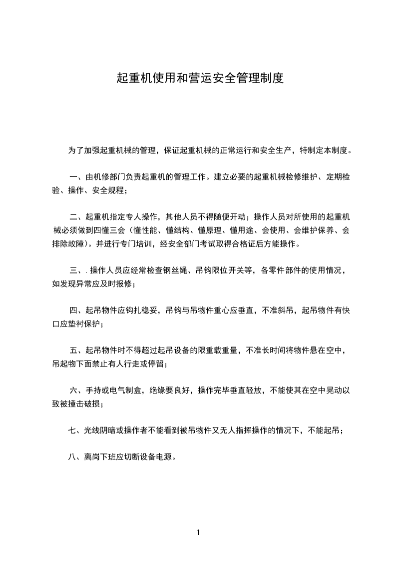 (八)在停工或休息时,不得将吊物、吊笼、吊具和吊索悬吊在空中;