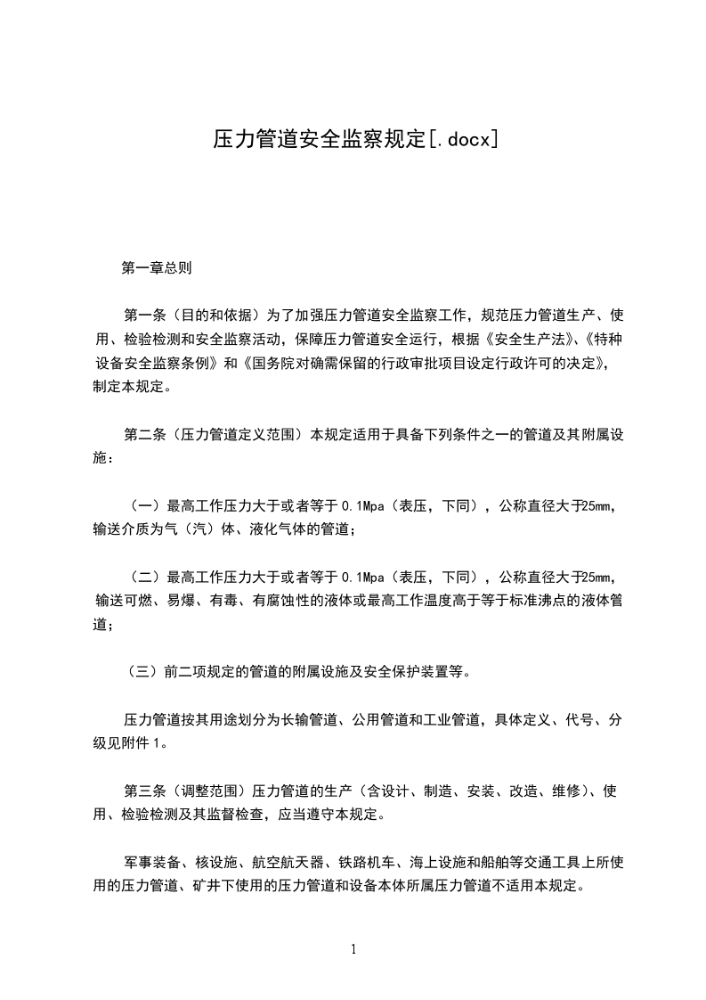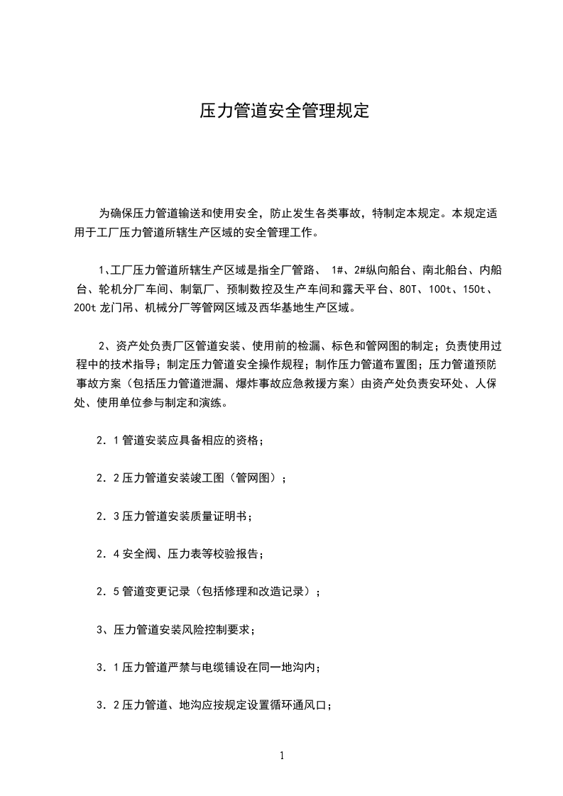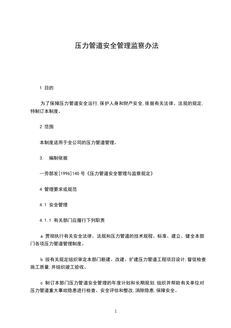为了保障压力管道安全运行,保护人身和财产安全,依据有关法律、法规的规定,特制订本制度。