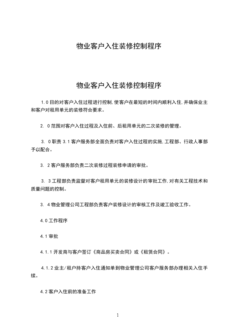 1.0目的对客户入住过程进行控制,使客户在最短的时间内顺利入住,并确保业主和客户对租用单元的装修符合要求。