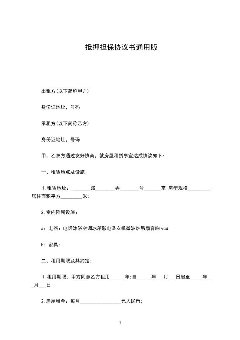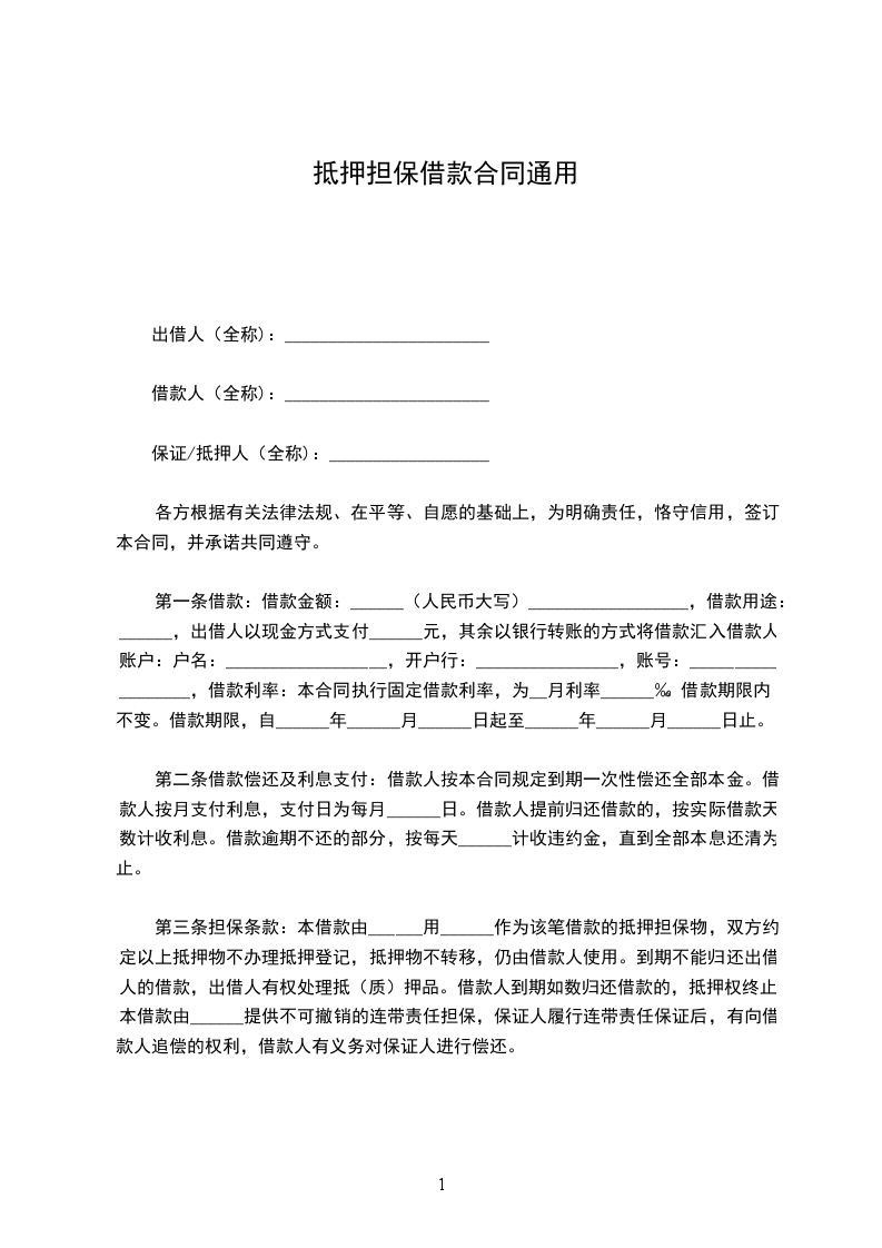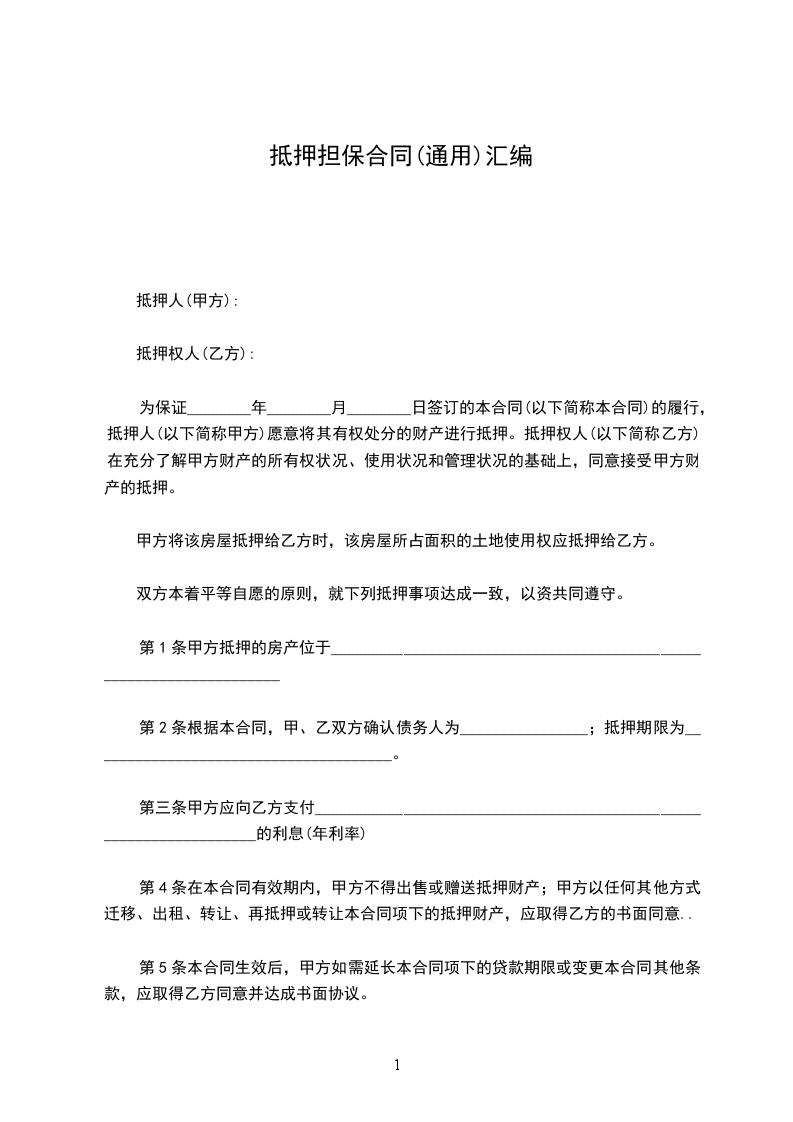 合同编号:_________ 抵押权人(以下称甲方):_________ 住所:_________ 法定代表人:_________ 联系电话:_________ 抵押人(乙方):_________ 住所:_________ 法定代表人:_________ 联系电话:_________ 乙方为担保甲方与乙方之间于________年____月____日所签订的借款合同的履行,在公平、自愿、平等协商的基础上乙方以自己享有相关处分权的财产为甲方提供抵押担保。
