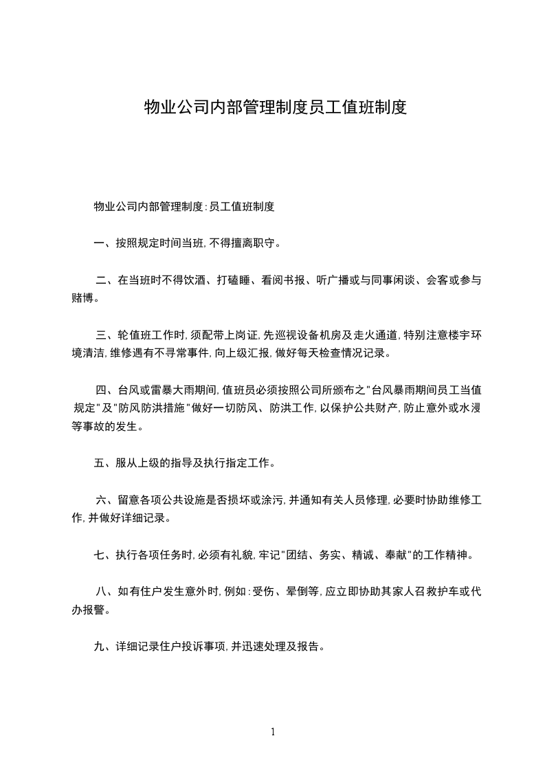 三、轮值班工作时,须配带上岗证,先巡视设备机房及走火通道,特别注意楼宇环境清洁,维修遇有不寻常事件,向上级汇报,做好每天检查情况记录。