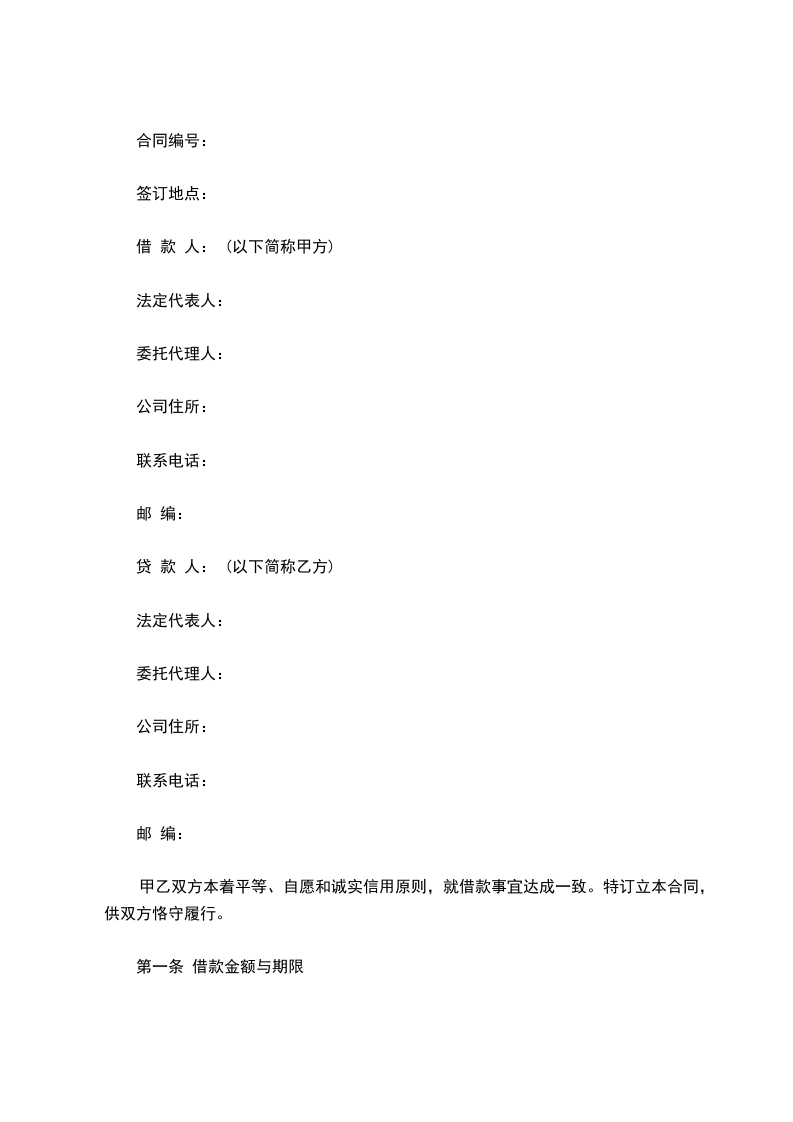 第一条 借款金额与期限