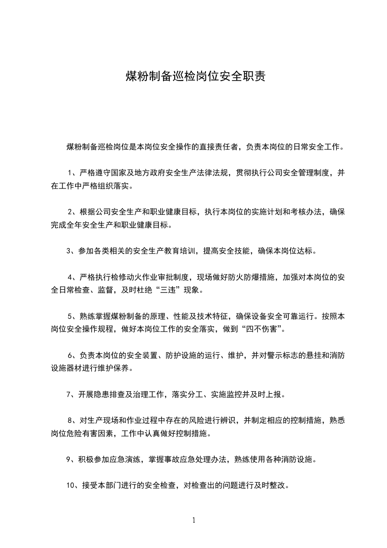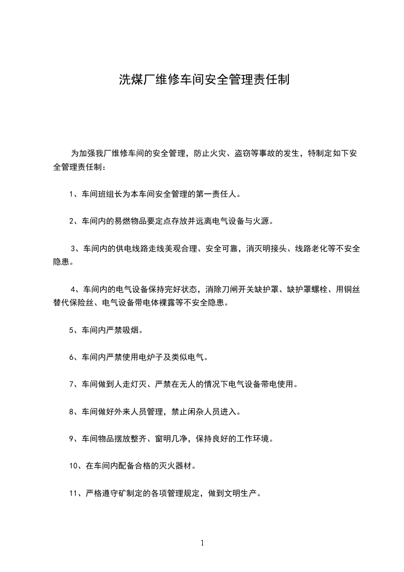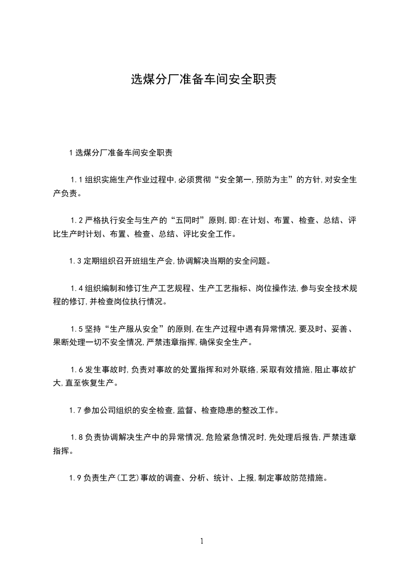 1选煤分厂准备车间安全职责